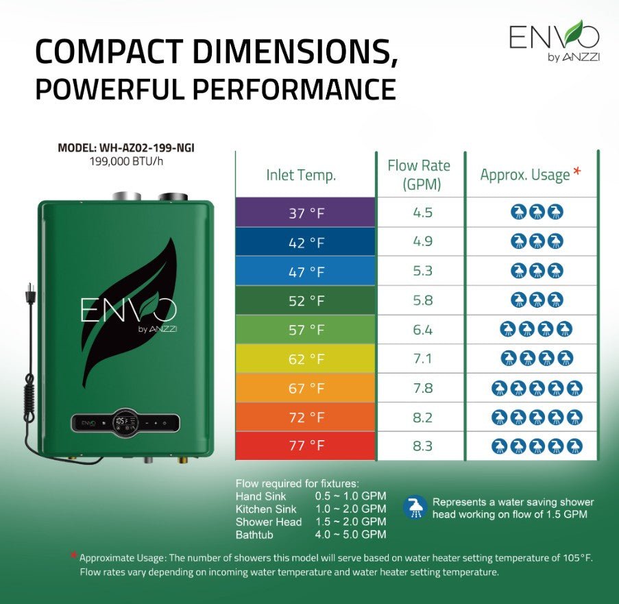 Experience unlimited hot water with the WH-AZ02-199-NGI, a Natural Gas Indoor tankless water heater. Boasting 199,000 BTU power, this system provides energy-efficient, on-demand heating for maximum convenience. Designed for durability and reliability, it features built-in Anti-Freezing Protection to perform even in harsh climates.