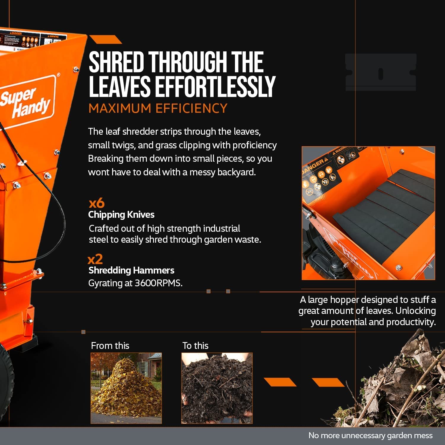 Super Handy GUO083 145CC OHV 3.4 HP 1″ Inch Cutting Capacity Leaf Shredder Used